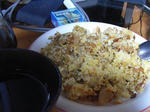 しばらく炒める。上手に炒められた場合、ちゃんとぱらぱらの炒飯になる不思議。