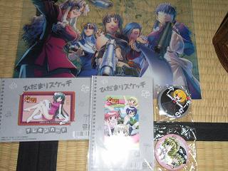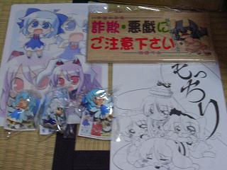 左キーホルダー&下敷き:ピンクカンパニー、ネタ具現化委員会、スタジオパルテノンプロダクション企画、販売。あらかじめチェックして買った企業ブース商品、あらかじめ予約あったからか、二時三時まわっていたからか並んでいた人は少なめ。